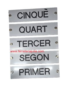 Ubicació: Han de col·locar-se en llocs visibles i estratègics als descansets per facilitar la ràpida identificació del pis.